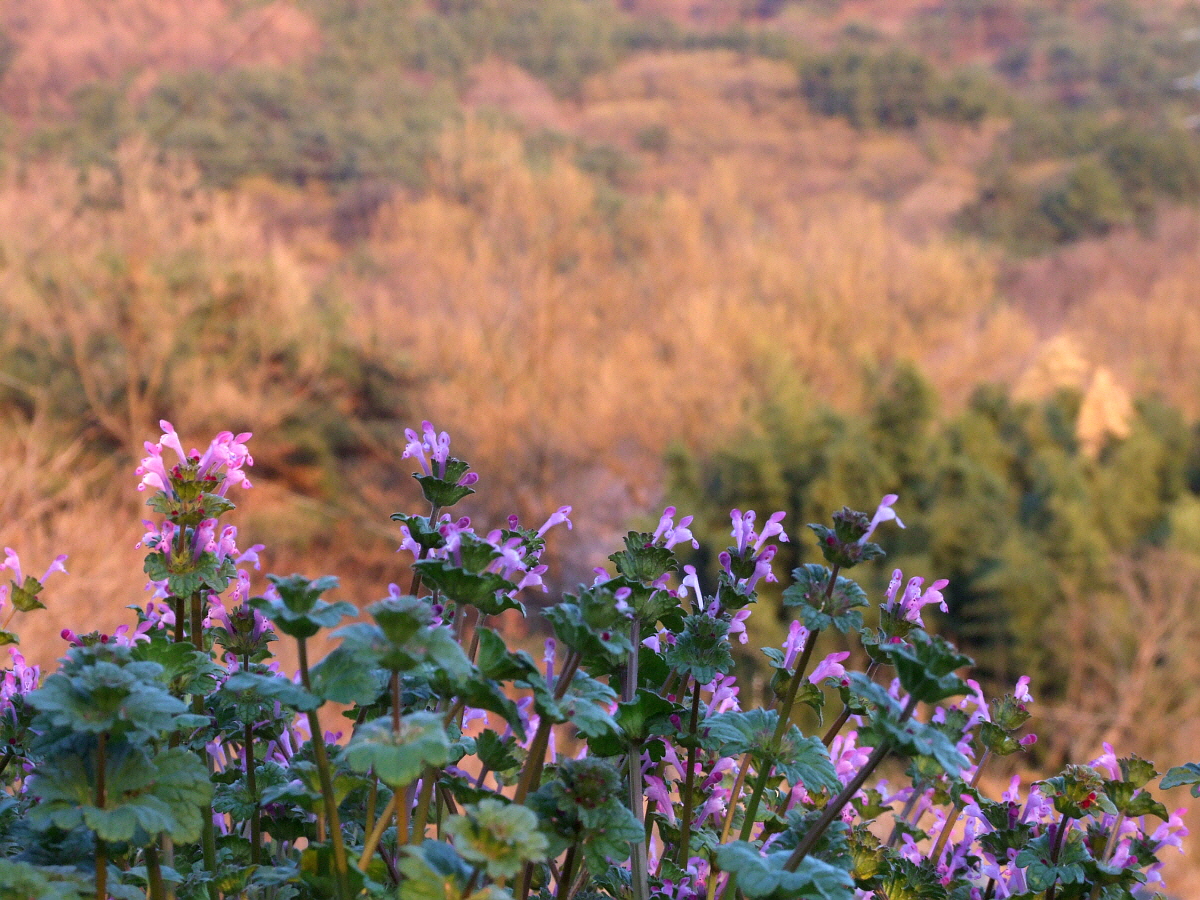 늦은오후 그늘이 지어 어둑한 과수원 텃밭에 광대나물이 한창이다.