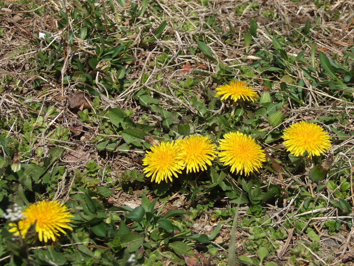 서양민들레도 씩씩하게 노란 얼굴을 보여준다.